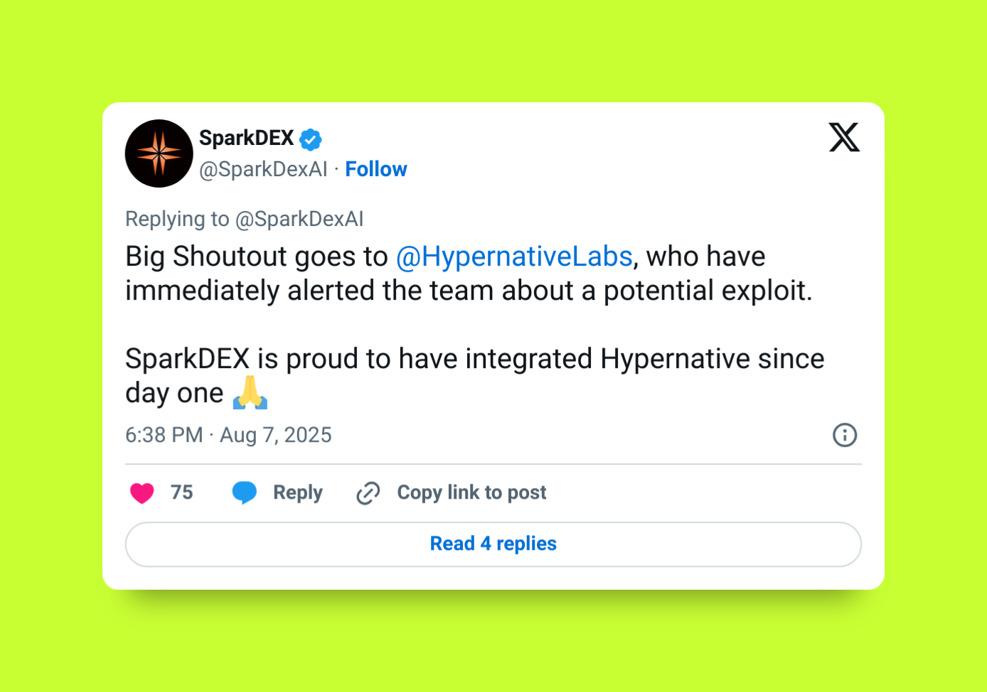 Detection without trust is just noise. SparkDEX trusted our intelligence, acted within minutes, and showed how DeFi can move from damage control to making attackers pay.