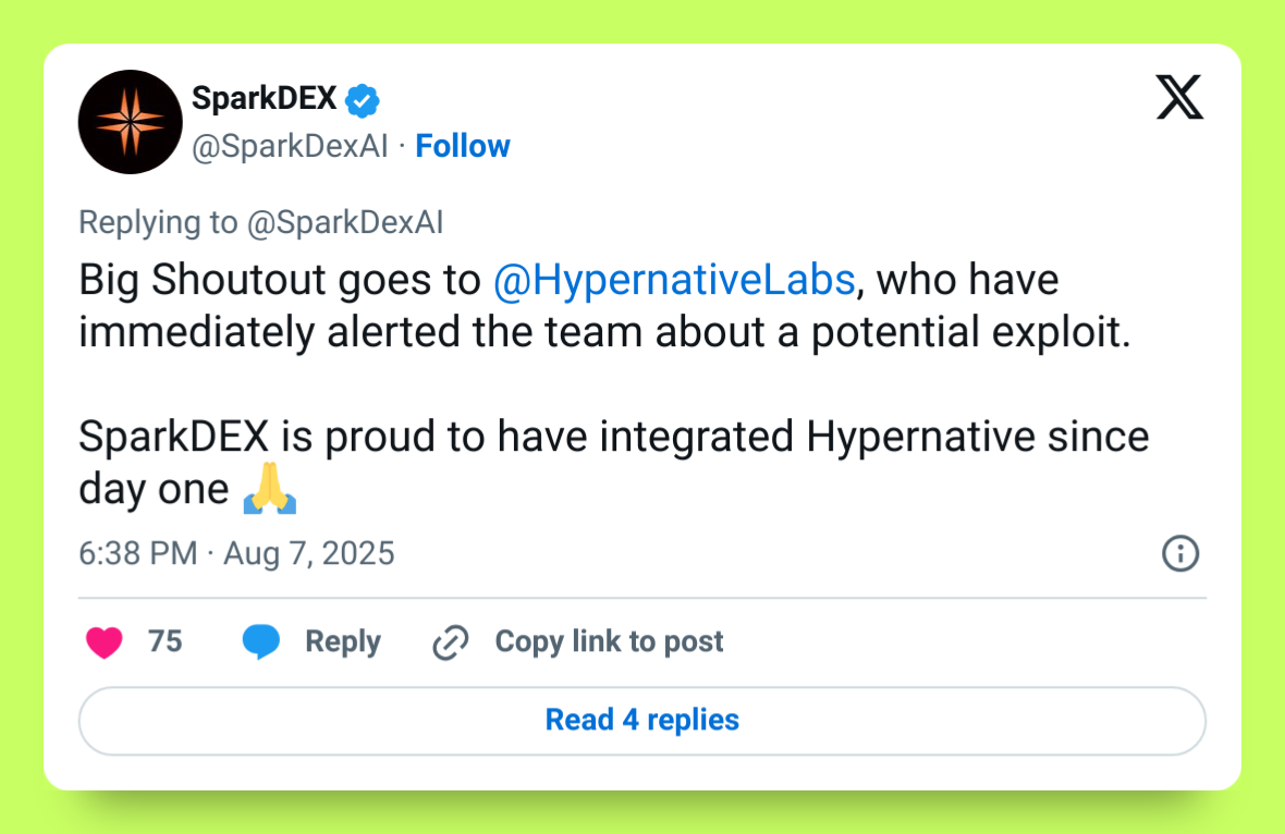 Read more: How SparkDEX Saved $1.5M With Automated Detection of a Failed Exploit