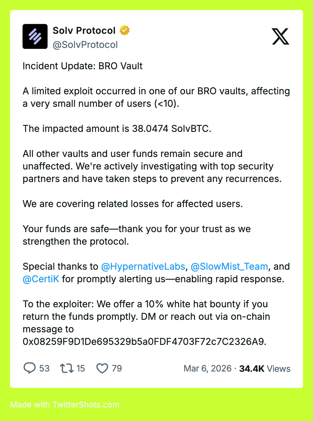 Solv Protocol: $10M Protected in a Non-Customer Detection